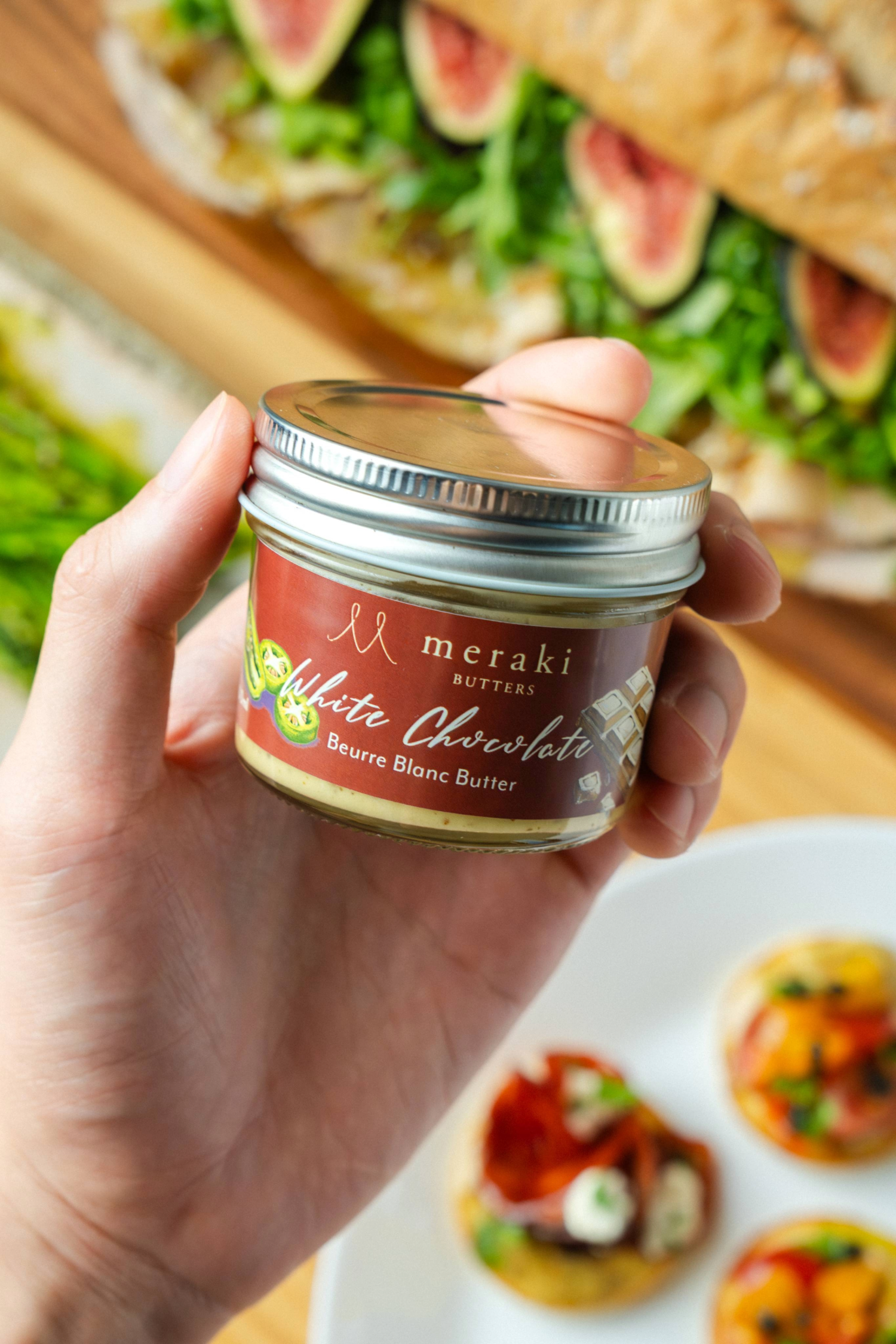 White Chocolate Beurre Blanc Butter brings a quiet richness that balances sweet, savoury, and a touch of heat. White chocolate rounds out the beurre blanc base, while jalapeño warmth and kombu depth give it an unexpected complexity. It’s indulgent, layered, and designed to elevate even the simplest dishes.